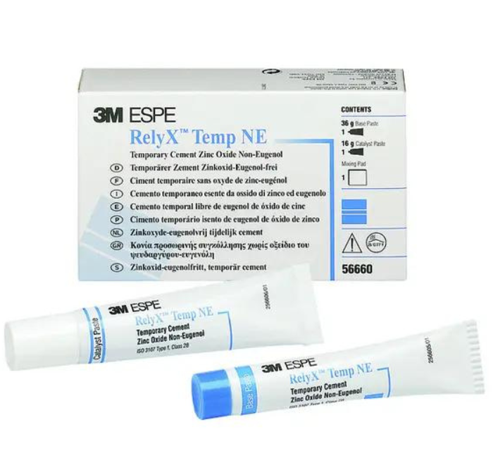 RelyX Temp NE – безефірний цемент на основі оксиду цинку. Представляє собою двокомпонентну систему паста/паста (базова паста 36 г і каталізатор 16 г для ручного змішування).